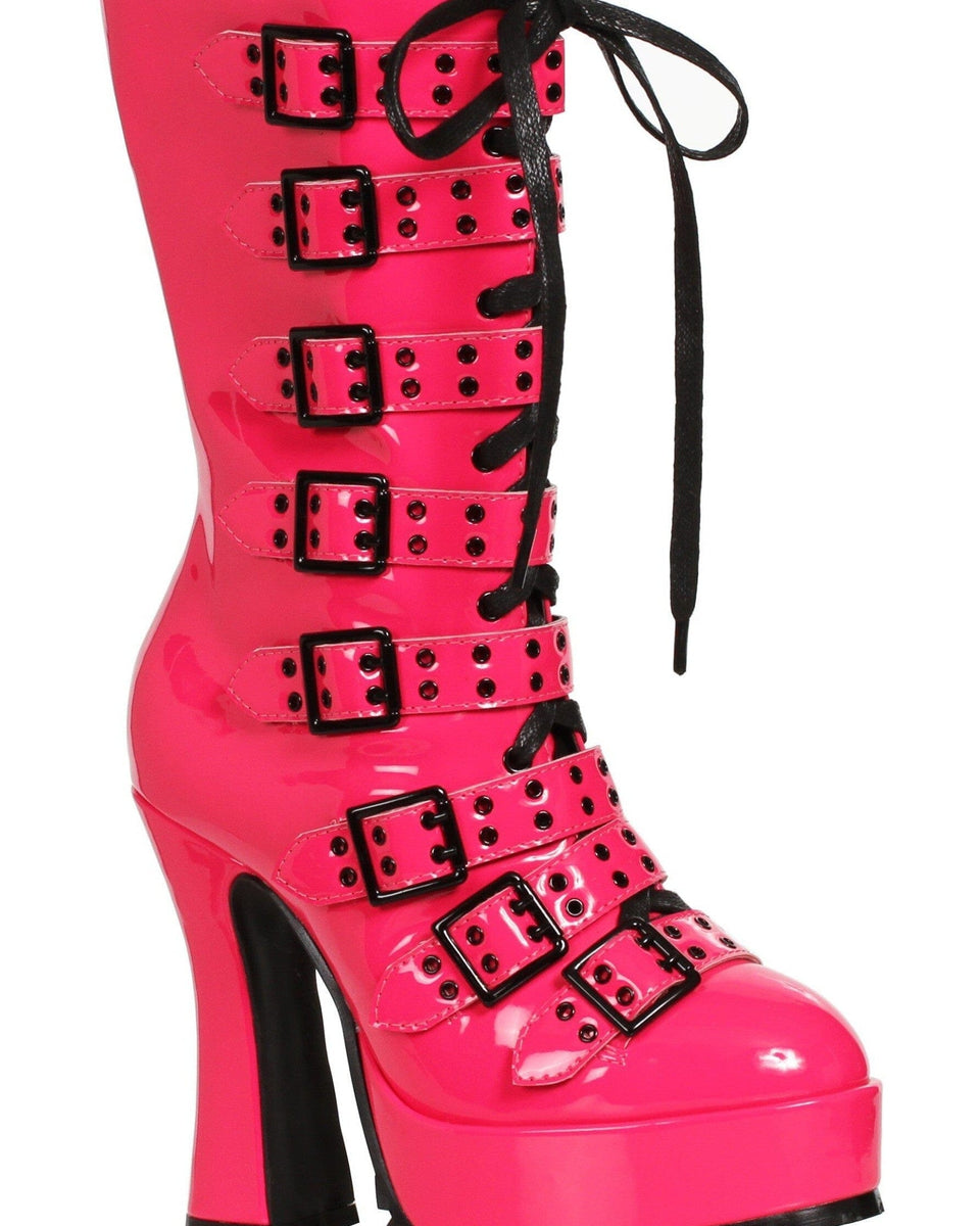 5.5" Chunky Heel Lace Up and Buckled Strapped Platform Ankle Boot