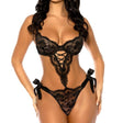 Soft Cup Teddy with Plunging Neckline and Attached Garter Stays | Black
