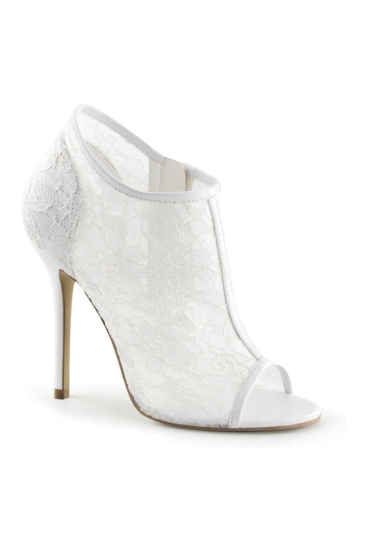 5" (12.7cm) Heel with Open Toe Bootie with Lace Overlay with Inner Side Zipper Lace Mesh