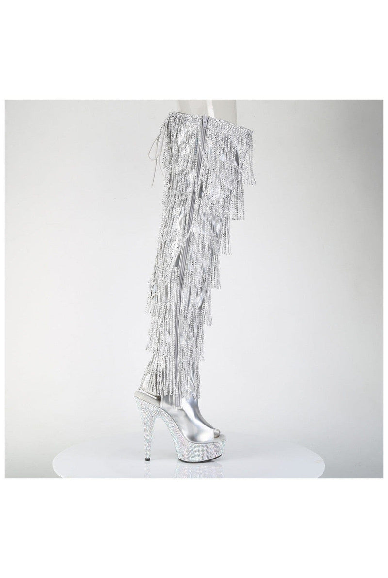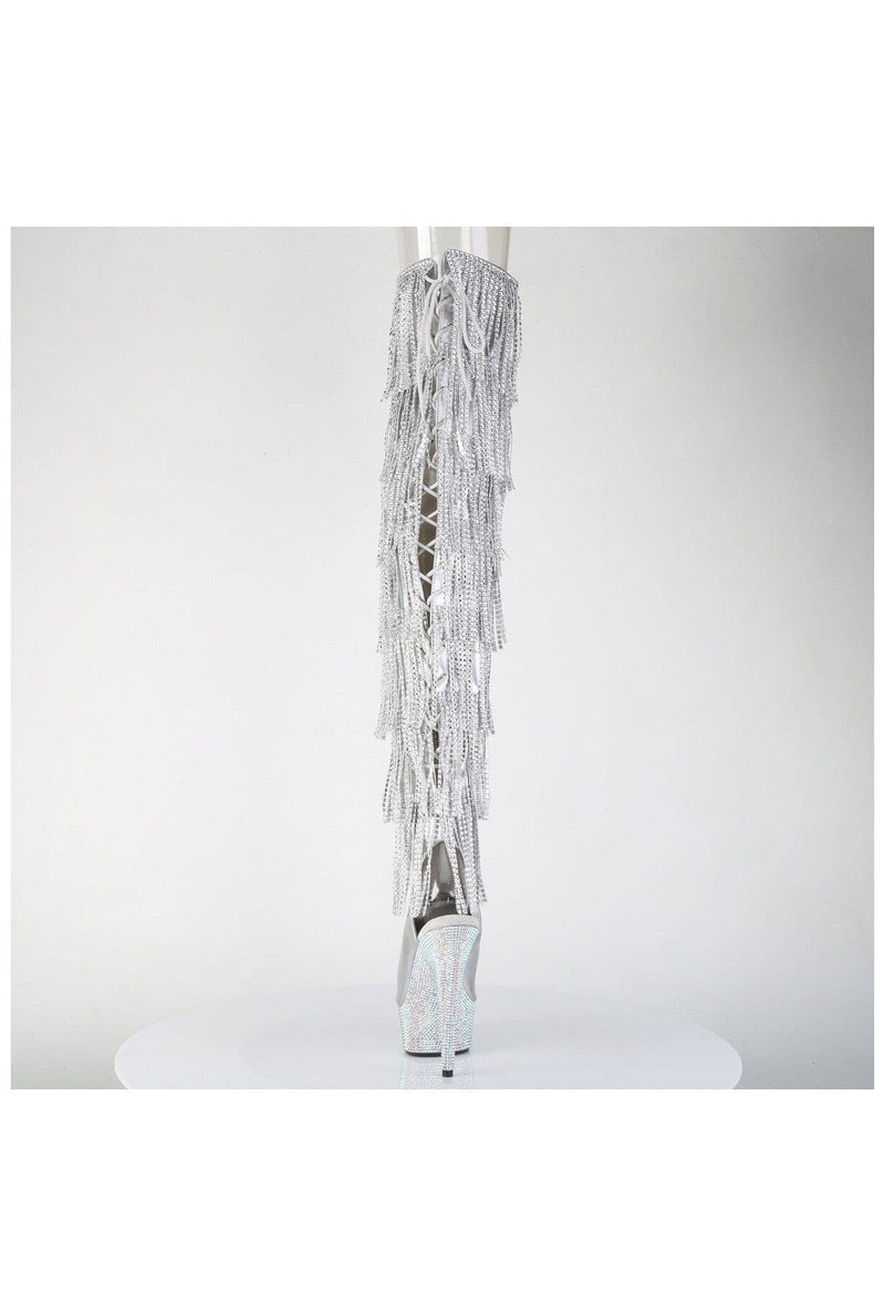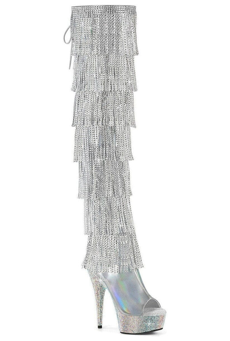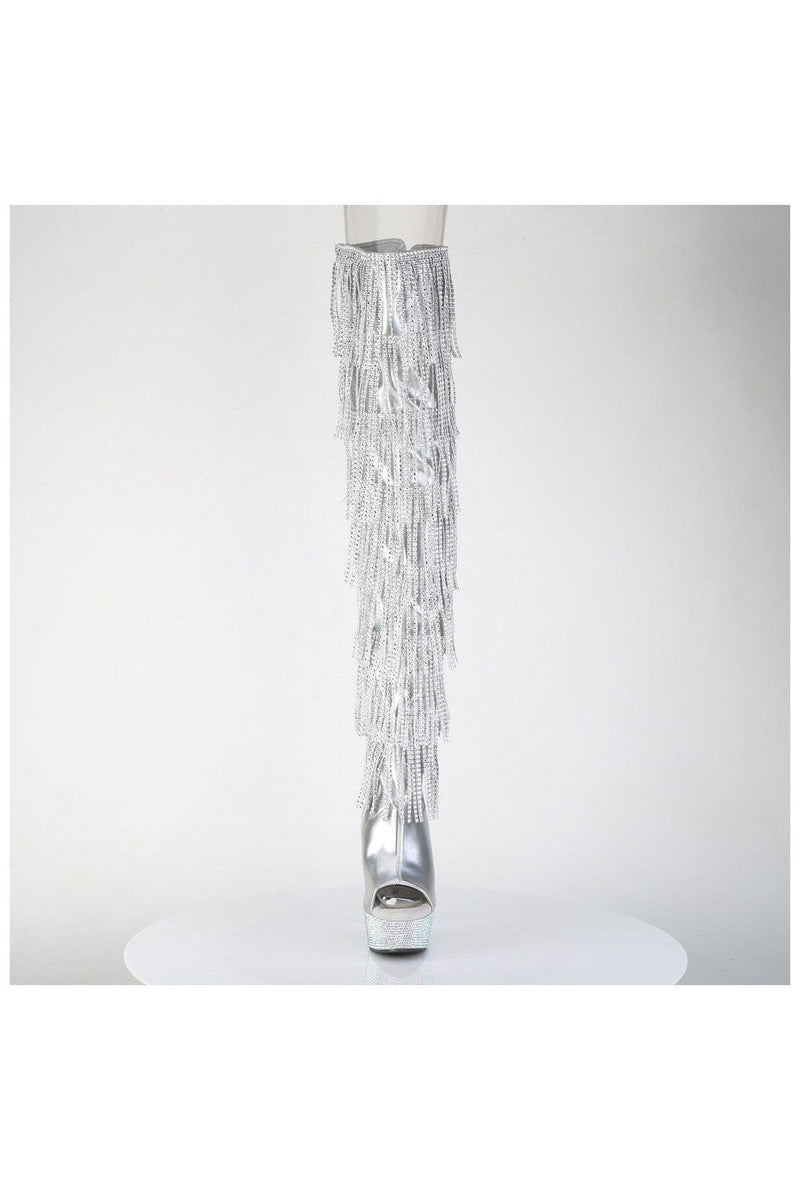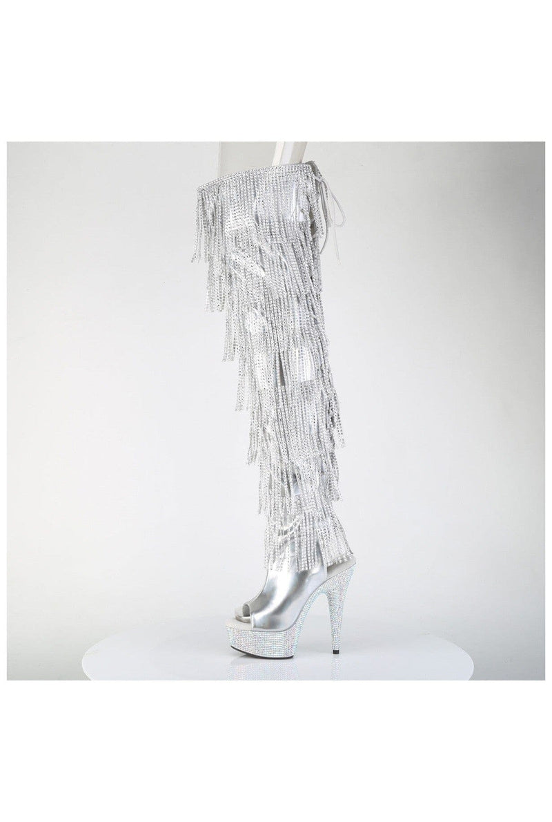 Pleaser  BEJEWELED-3017HG-RSF Thigh Boot in Silver Patent