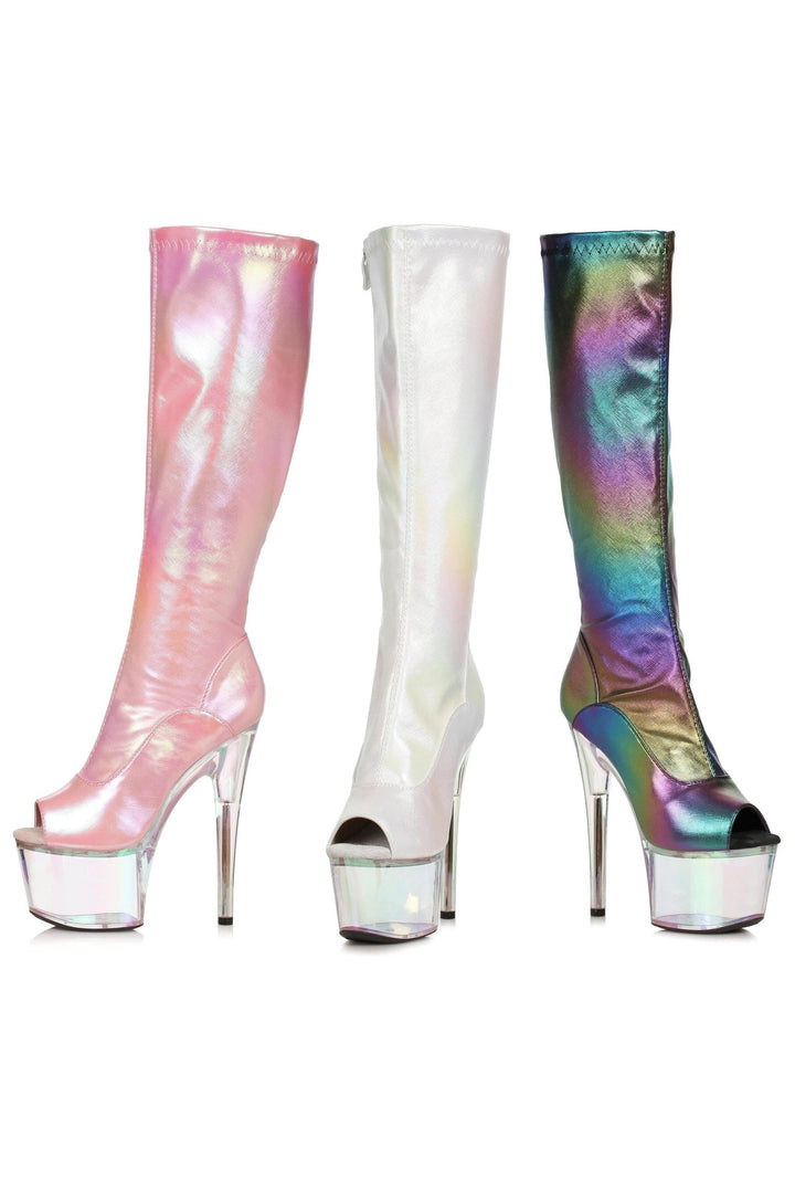 Ellie Shoes 709-BRANDY 7" Iridescent Knee High Boot With Rainbow Tinted Platform