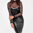 Business up front, sexy in the back: get ready to embrace your inner seductress in this Powerwetlook mini-dress. This dress has cap sleeves with a high collar in the front, while the upper back is open with lacing up the bum.