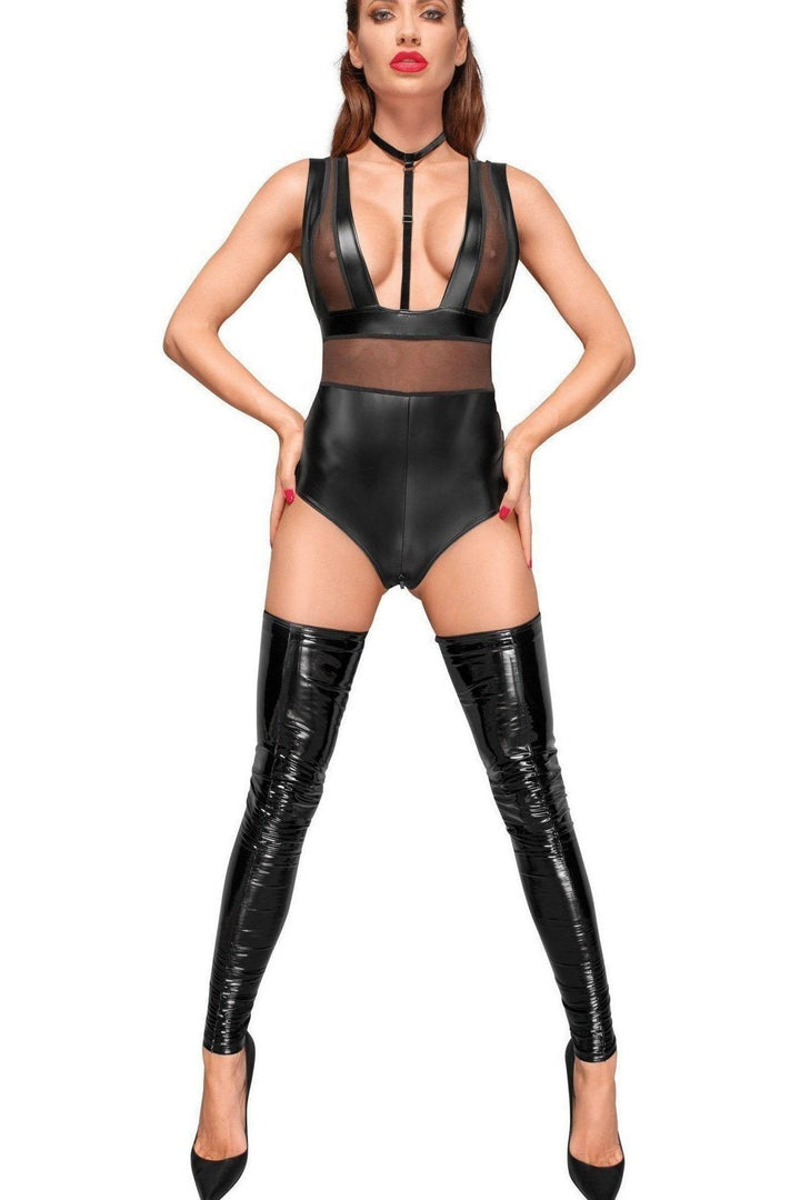 Velvet Choker & Tulled insert Bodysuit-Noir Handmade-SEXYSHOES.COM