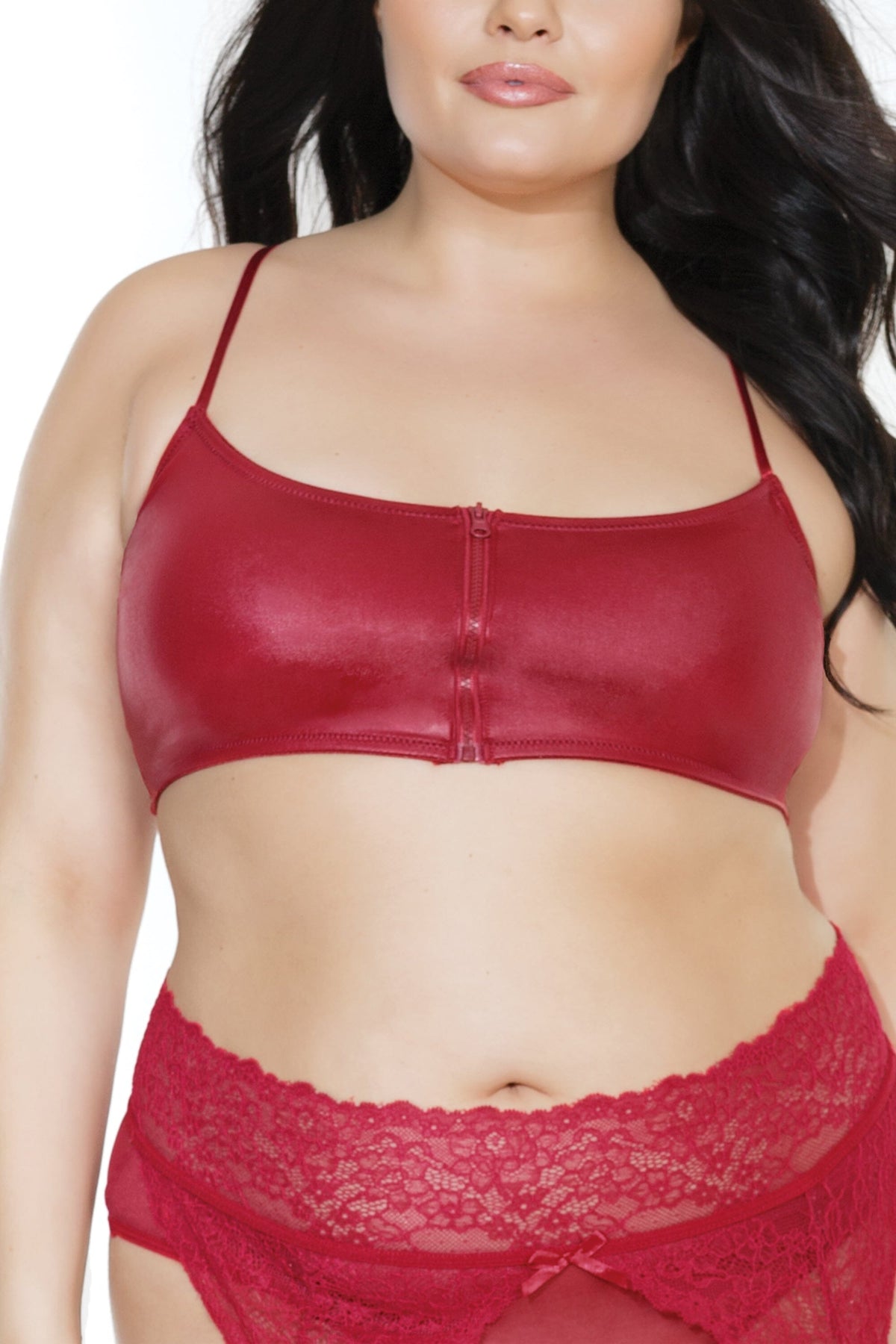 Matte Wetlook Bralette With Front Zipper Closure & Adjustable Straps | Plus Size