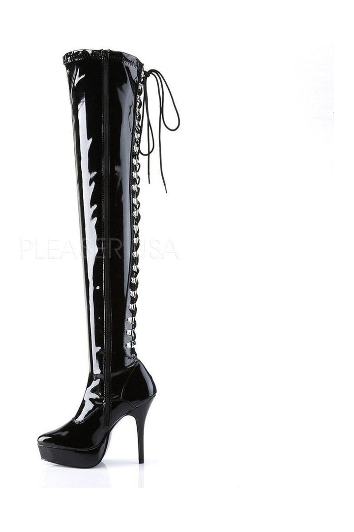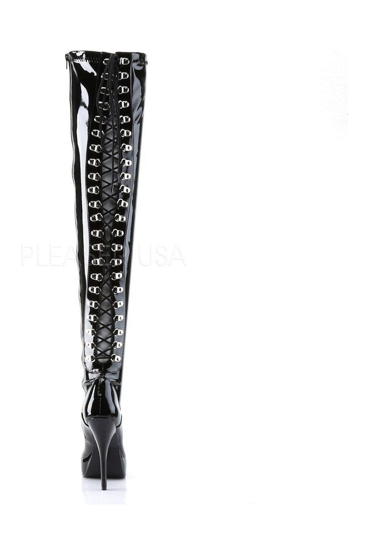 5 1/4" (13.3cm) Heel & 1 1/4" (3.2cm) Platform Back Lace Up Stretch Thigh Boot & Full Inner Side Zipper