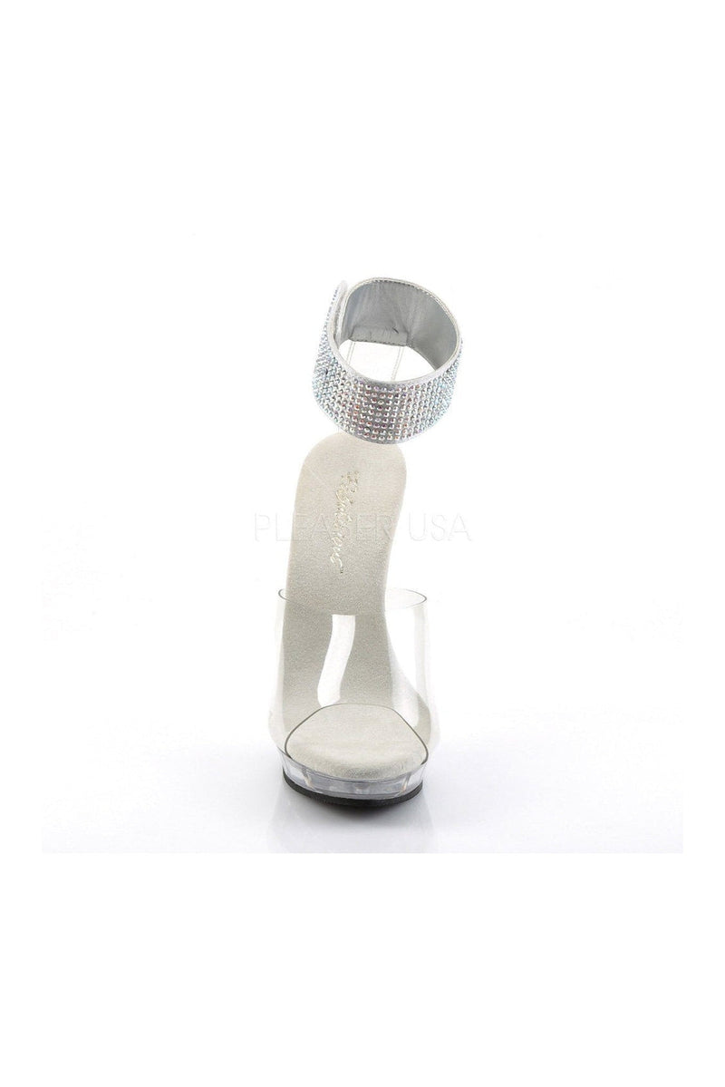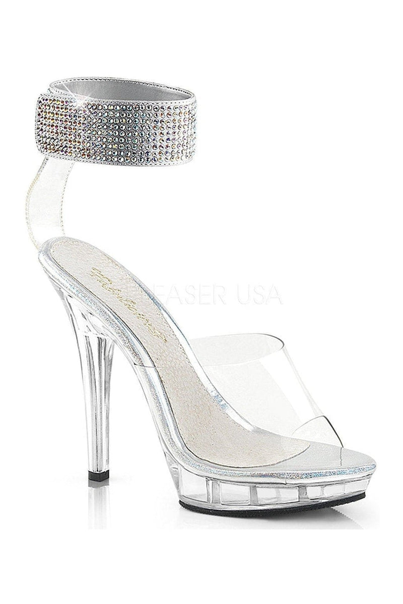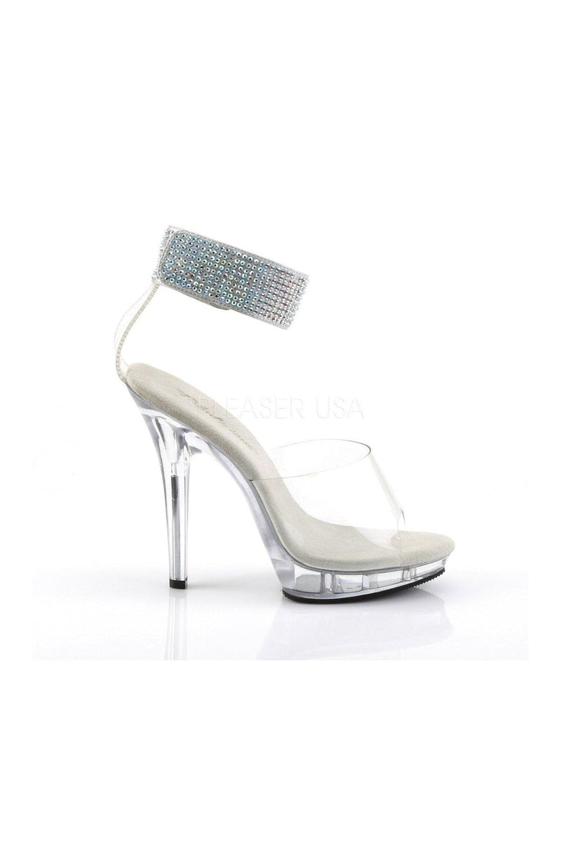 5" (12.7cm) Heel with 3/4" (1.9cm) Platform Sandal Featuring Wide Ankle Band Fully Covered with Rhinestones