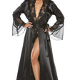 Elegant And Sexy, Our Charmeuse, Lace And Chiffon, Long Robe is Hollywood Glamour at it's finest. Our gorgeous lace trimmed bodice is highlighted by the built up shoulder seam while the fitted waist and self belt closure speak to elegant flair. Full sweep to the hem of the robe offers an even more luxuriousness. Comes with side pockets and inner tie. Colors: Black, Red, White. Sizes: S/m, L/xl. Also available in Plus Sizes