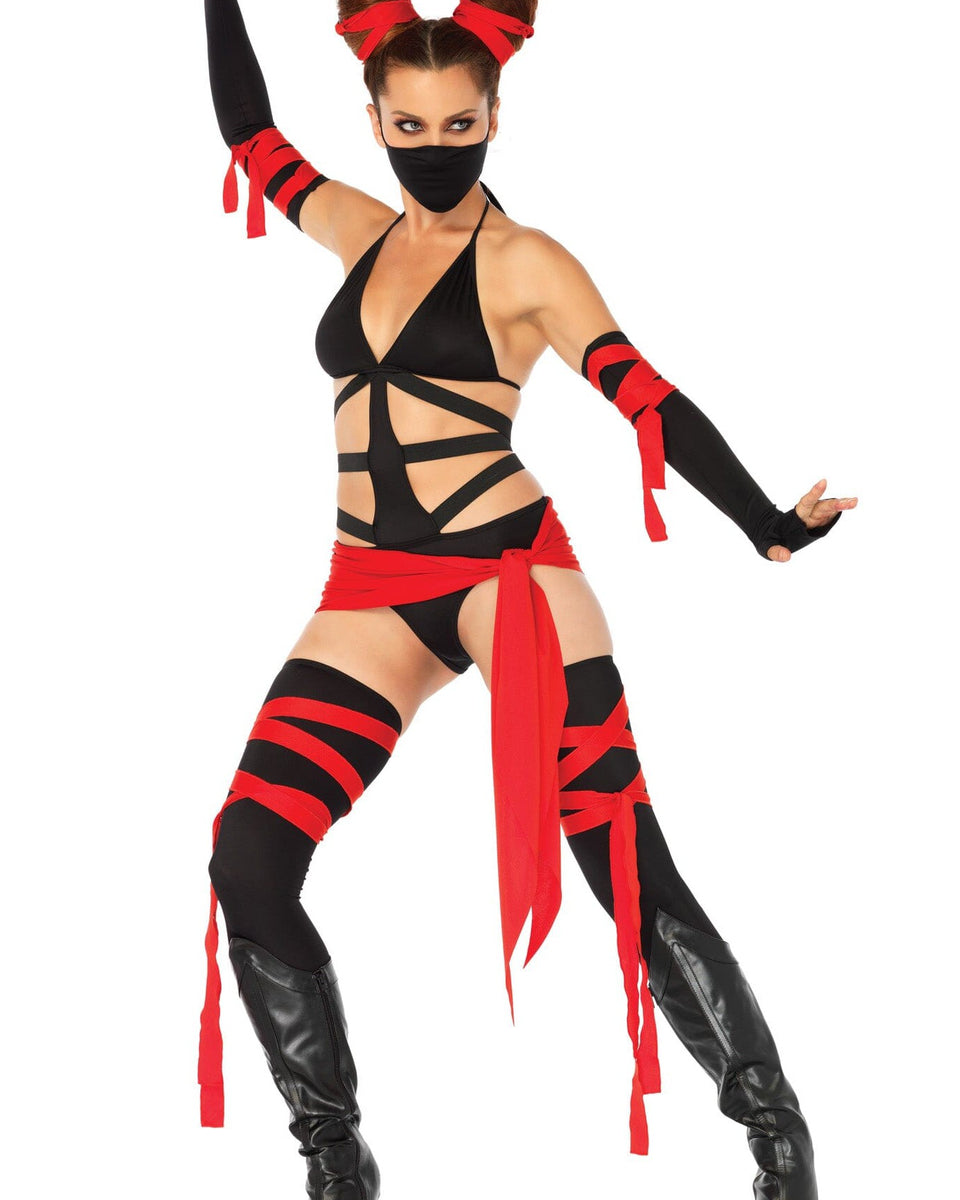 Leg Avenue 6 Piece Killer Ninja,bikini bodysuit, thigh highs, arm warmers, waist sash, hair wraps and face mask.