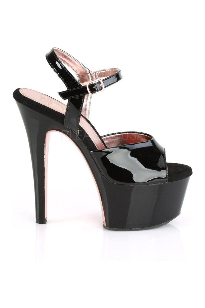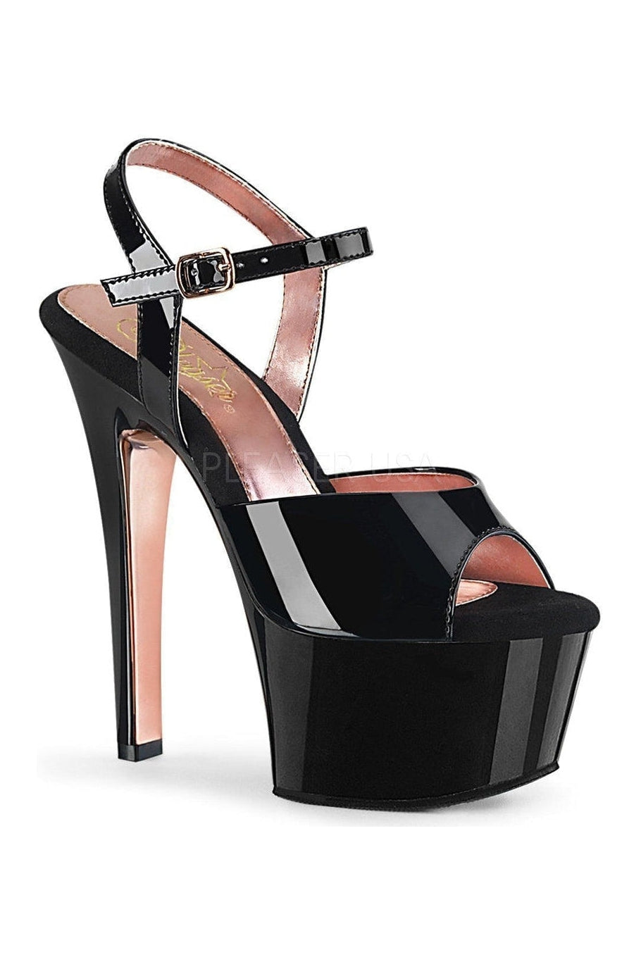 6"" (152mm) Heel, 2 1/4"" (57mm) Platform Ankle Strap Sandal Featuring Chrome Plated Platform Underside & Front of Heel