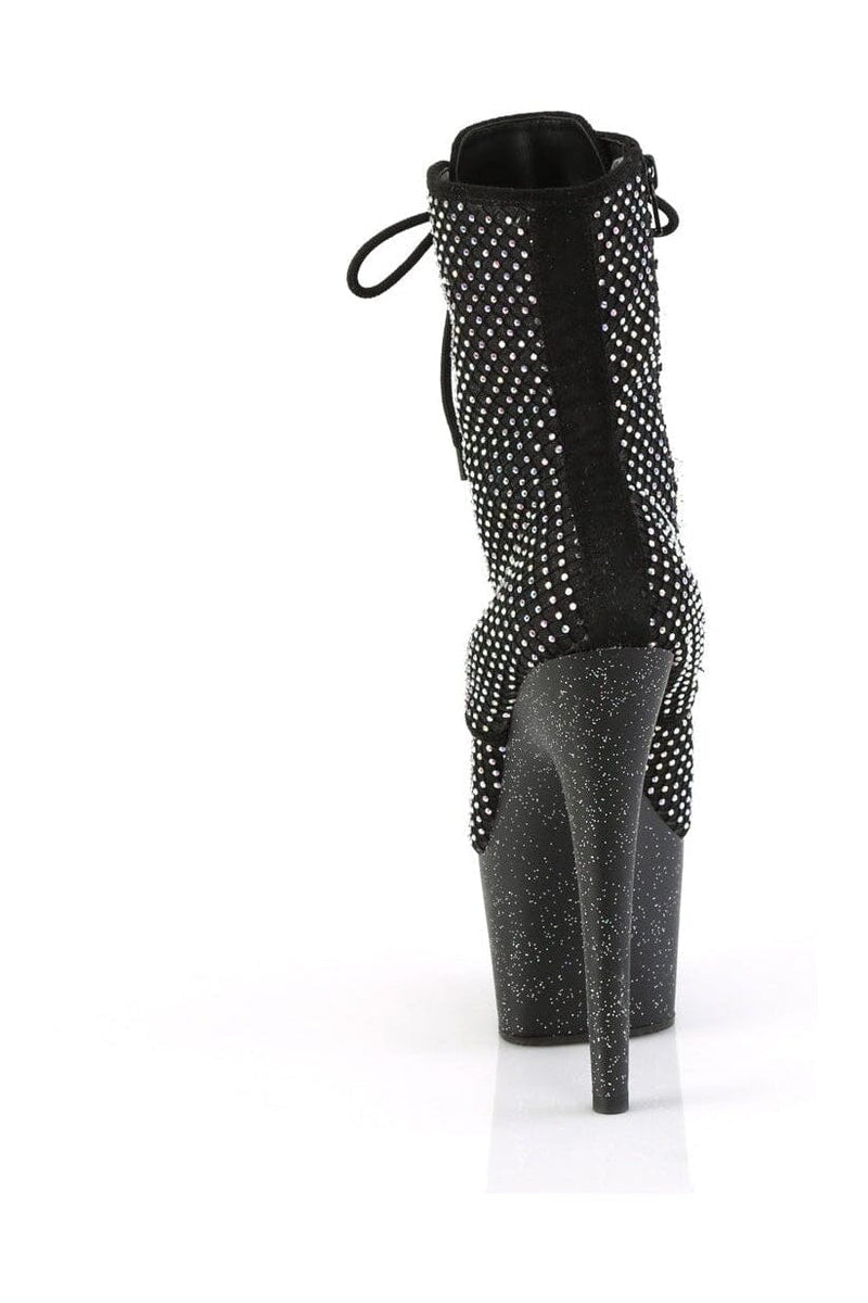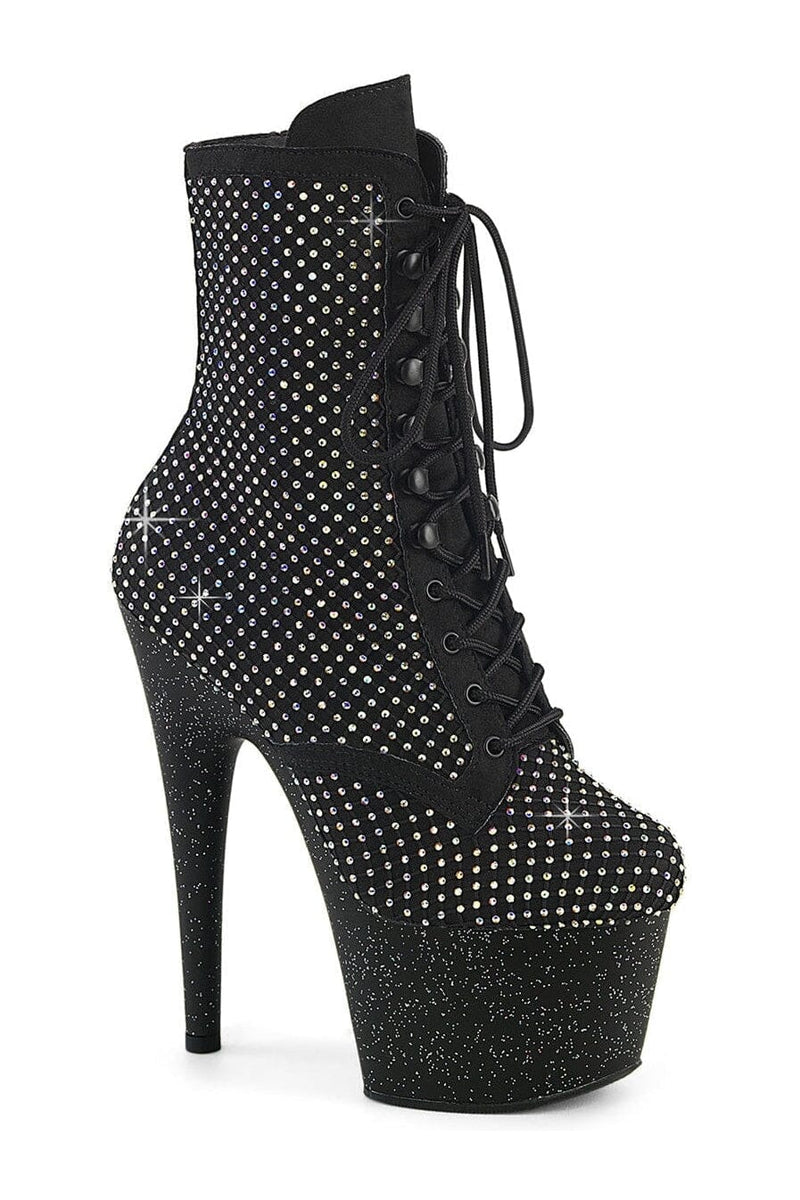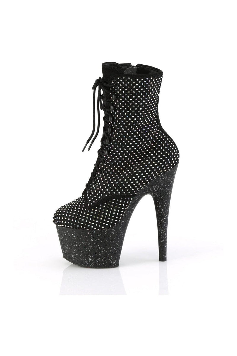 7" Heel, 2 3/4" Platform Lace-Up Rhinestone Mesh Ankle Boot, & Side Zipper
