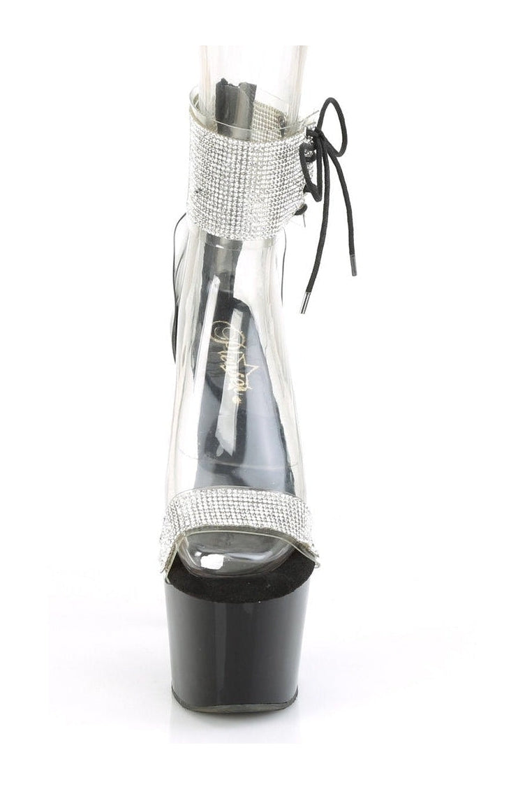 7" Heel, 2 3/4" Platform Ankle Cuff Sandal w/Rhinestone, and Back Zipper
