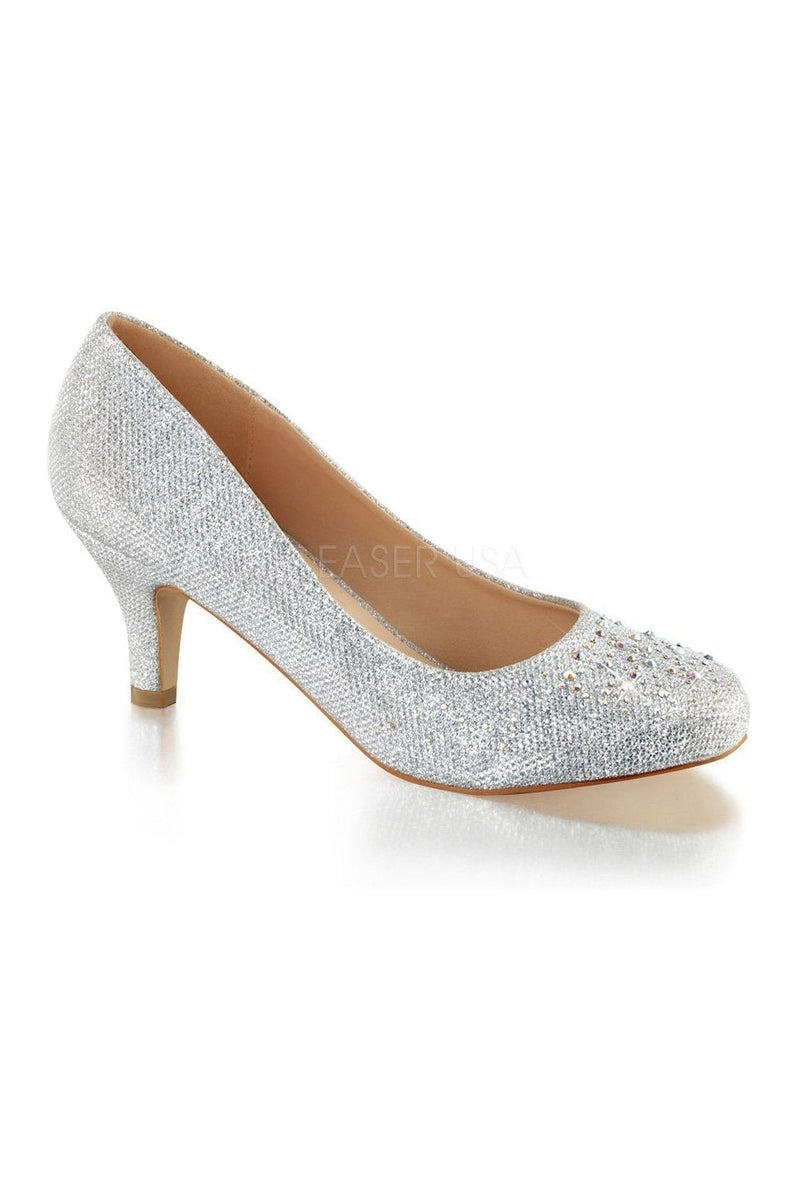 2 1/2" (6.4cm) Kitten Heel Pump with Silver Multi Rhinestone Embellishment at Toe Glitter