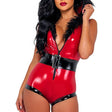 Includes Vinyl Halter Top with Detachable Hood with Faux Fur Detail, & Vinyl Shorts, & Belt