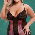 Sexy outside of the classroom is far more fun! This playful take on a classic schoolgirl uniform is sure to grant you straight A’s! A cropped, sheer lace top ties just below the chest, amping up the cleavage, while a low waisted ultra short plaid skirt shows off your perfect assets! Own the classroom (and the bedroom!).