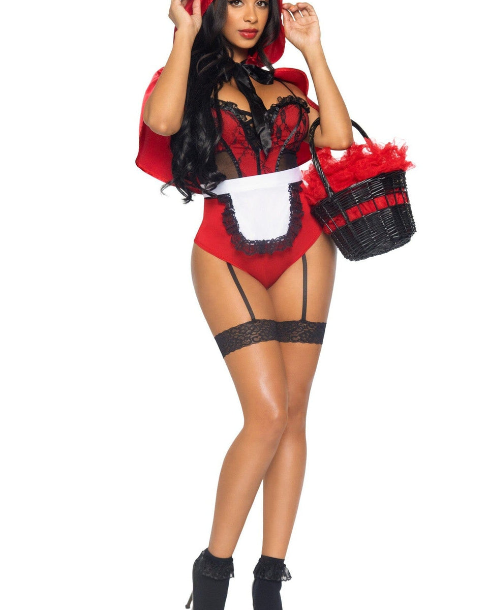 3 Piece Naughty Miss Red, includes lacy garter teddy, apron, and hooded cape