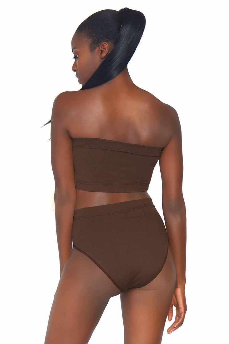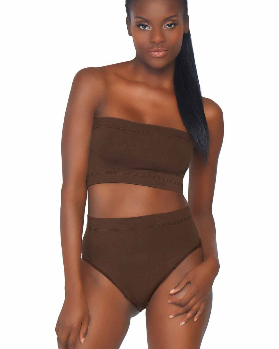 2 Piece Seamless Opaque Microfiber Ribbed Bandeau Top & High Waist Brief