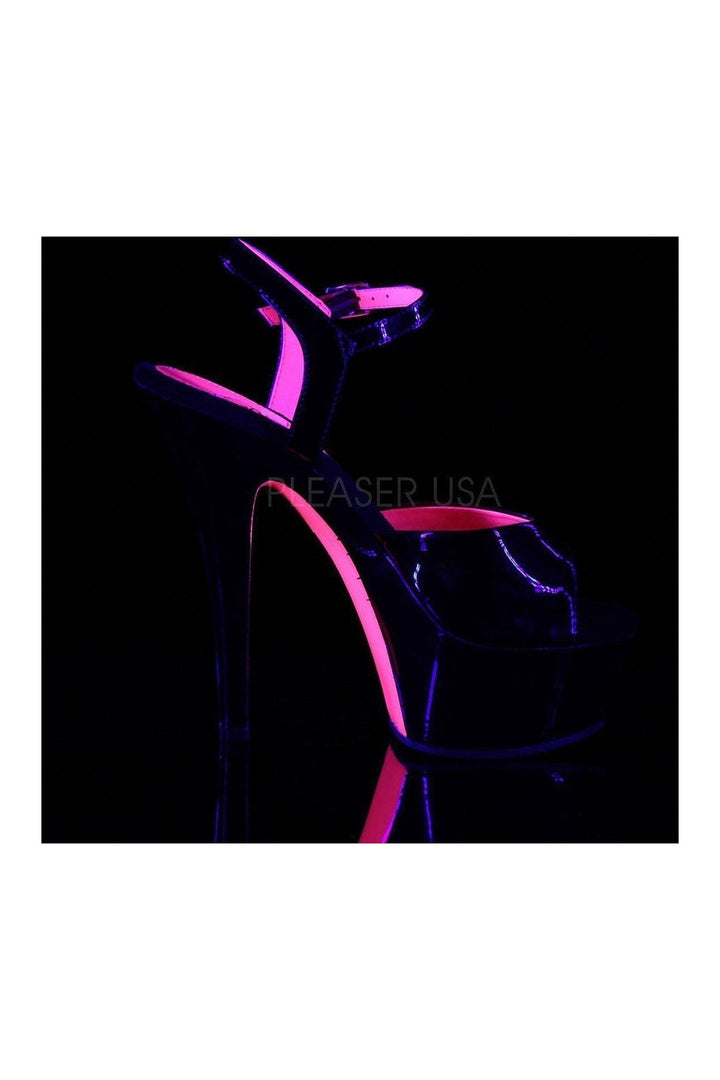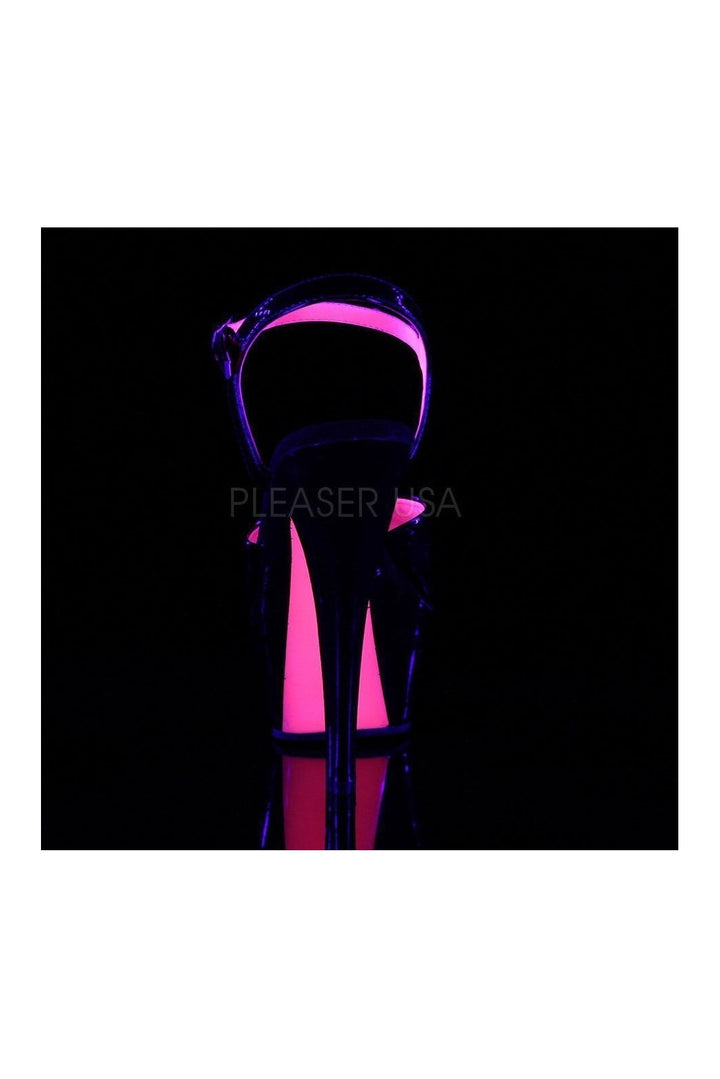 6" (15.25cm) Heel, 1 3/4" (4.5cm) Platform Two Tone Ankle Strap Sandal Featuring Neon Hot Pink UV Blacklight Effect