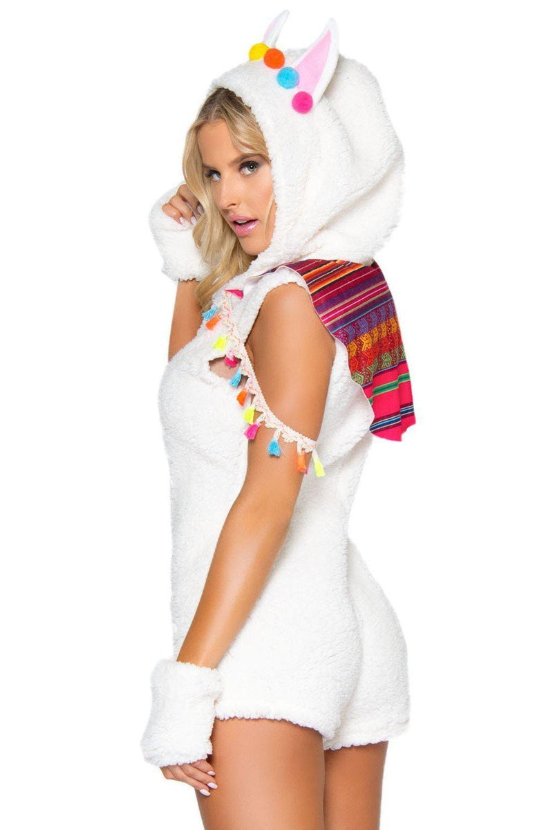 Leg Avenue 2 Piwxw Cuddly Llama, includes ultra soft plush zip up bodysuit with tassel accents and poncho cape, llama ear hood, and paw gloves.