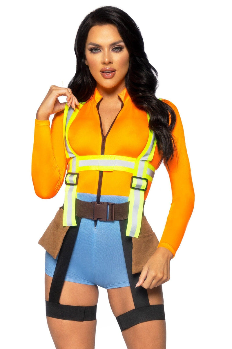 2 Piece Nailed It Construction Worker, includes zip up romper and reflective garter harness with tool pockets.