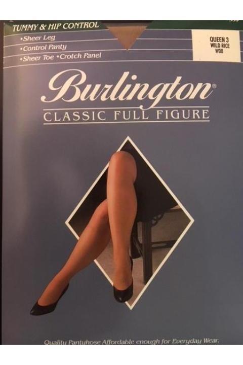 Burlington. Tummy & hip control with a sheer toe. Q2 5'2" at 150 lbs to 6' at 180 lbs. Q3 5'2" at 190 lbs to 6' at 230 lbs. Q4 5'2" at 245 lbs to 6' at 280 lbs.
