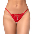Strappy lace thong featuring a flirty ring detail in the back for a bold, seductive touch.