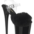7" Heel, 2 3/4" Platform Ankle Strap Sandal with Fur Upper