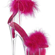 7" Heel, 2 3/4" Platfrom Marabou Fur Ankle Cuff Sandal, Back Zipper
