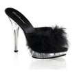 8" Heel, 4" Platform Marabou Fur Ankle Cuff Sandal, Back Zipper
