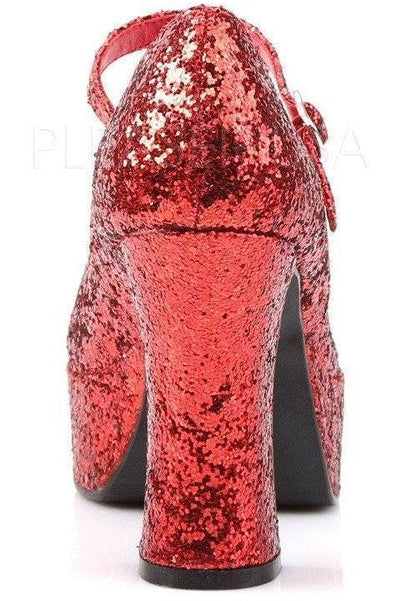 4" Heel Red Glitter Chunky Heel Mary Jane Platform