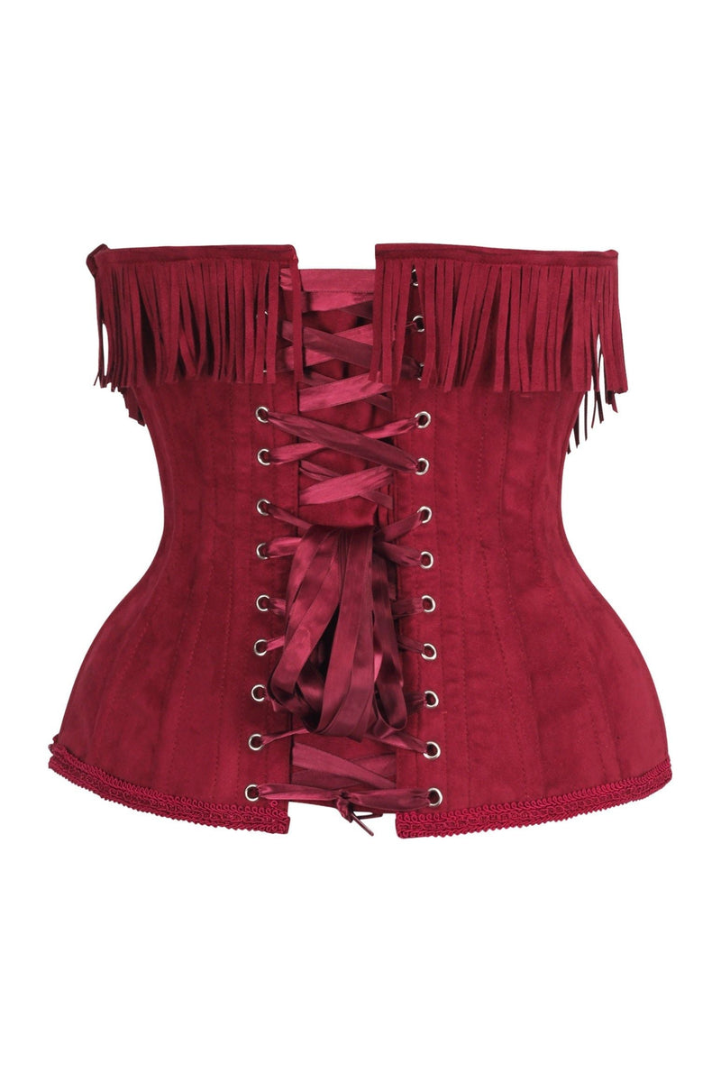Top Drawer Steel Boned Red Suede Underwire Underbust Corset Cincher w/Fringe