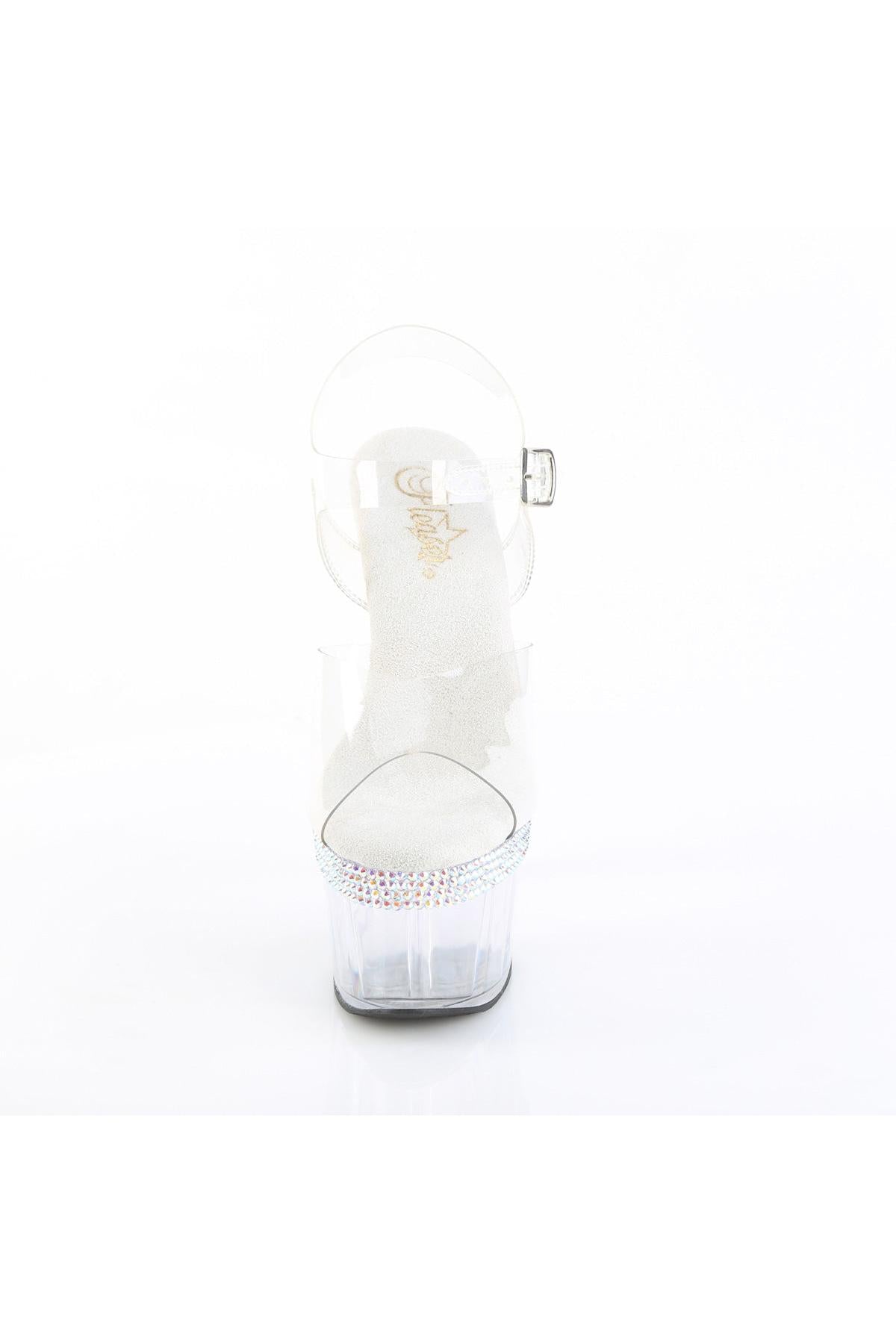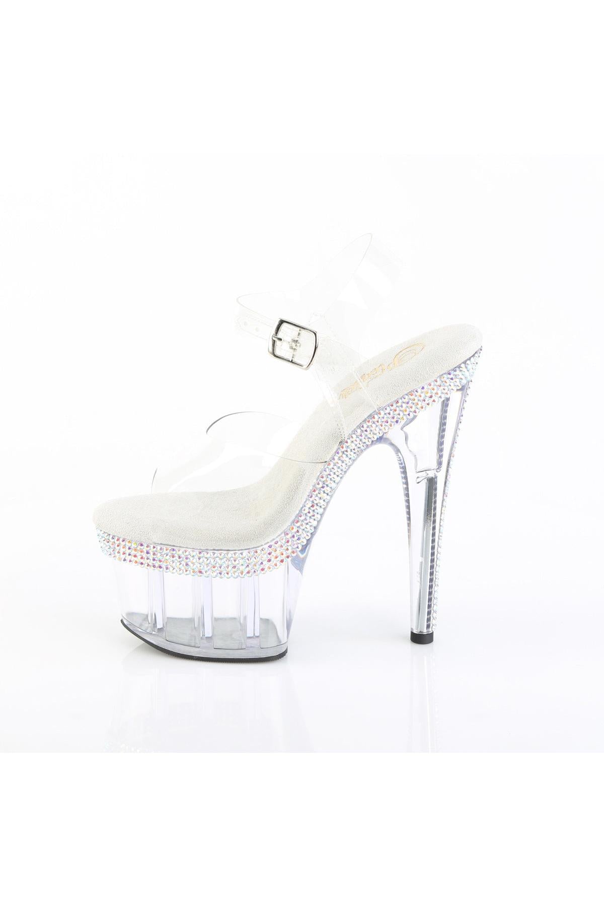 7" Heel, 2 3/4" Platform Ankle Strap Sandal w/ Rhinestone Lines