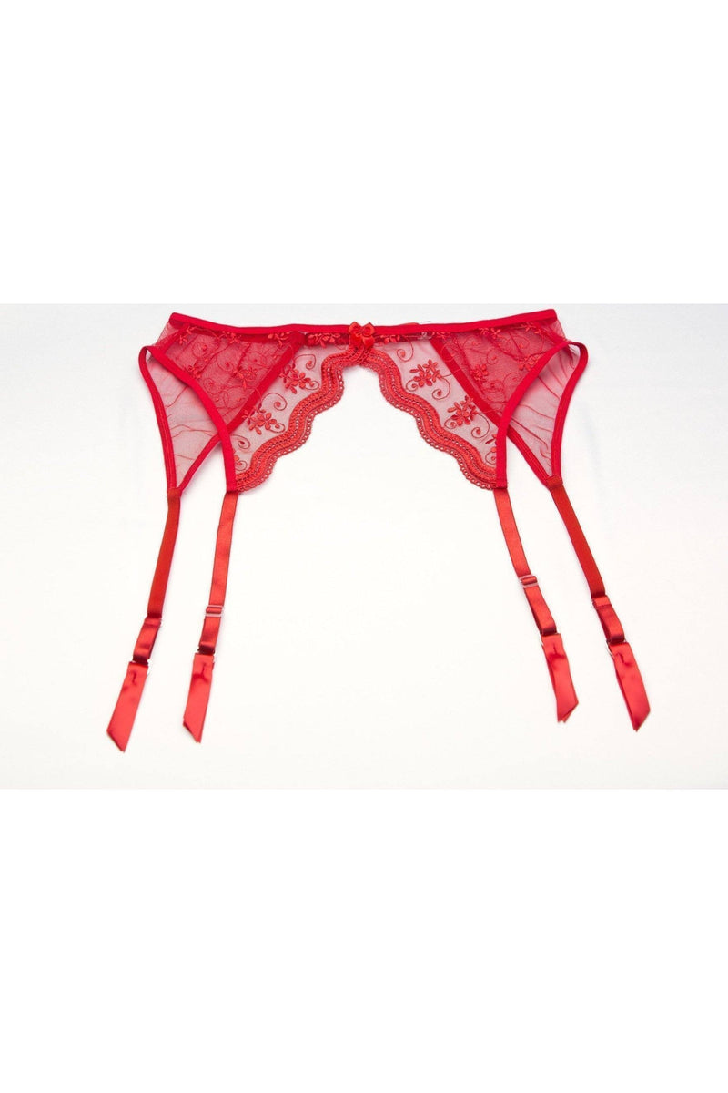 Intimate Attitudes Scalloped Embroidered Garter belt in Red