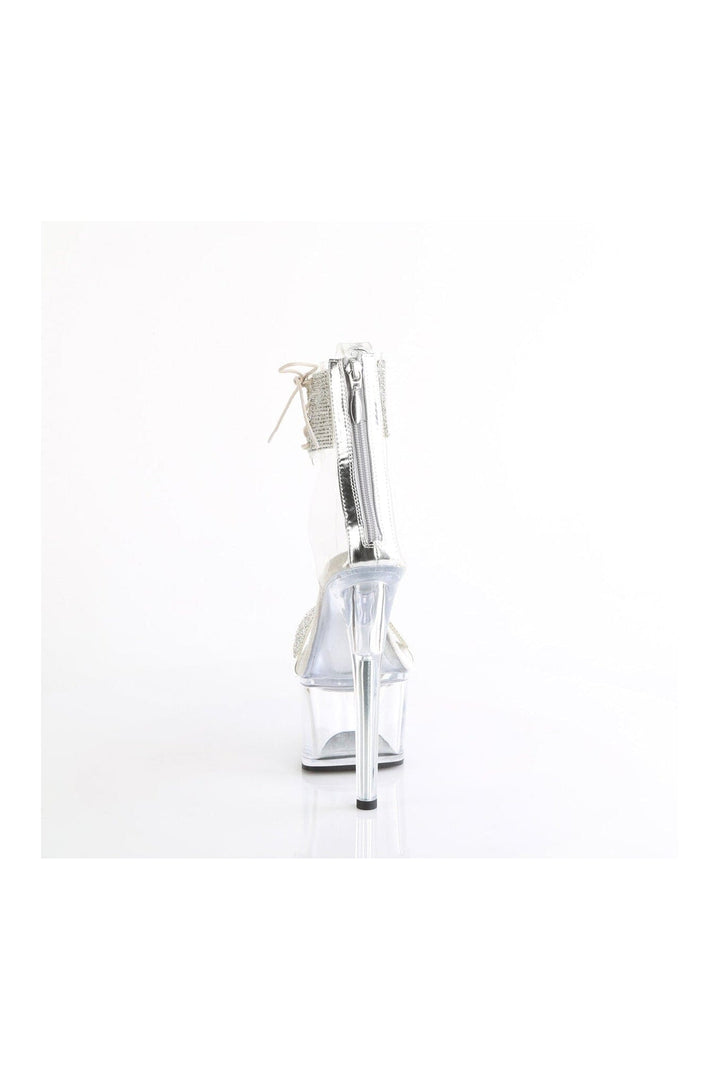 7" Heel, 2 3/4" Platform Rhinestones Embellished Ankle Cuff Sandal, Back Zi