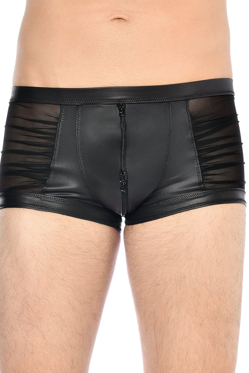 Experience the ultimate rush in our THEON Wetlook Boxers, crafted from sleek wetlook material and mesh. With a full opening and a three sliders zip, they offer maximum ease and style. The sets of gathered pleats on the sides add a bold touch, perfect for those who crave adventure and excitement. Don't settle for ordinary, take a risk with THEON.
