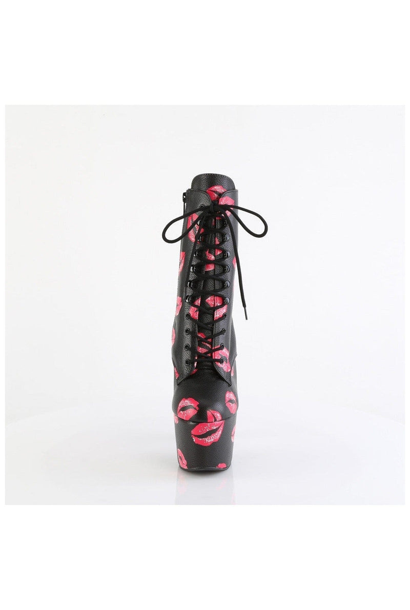 Pleaser ADORE-1020KISSES Black Faux Leather Ankle Boot in Black Faux Leather