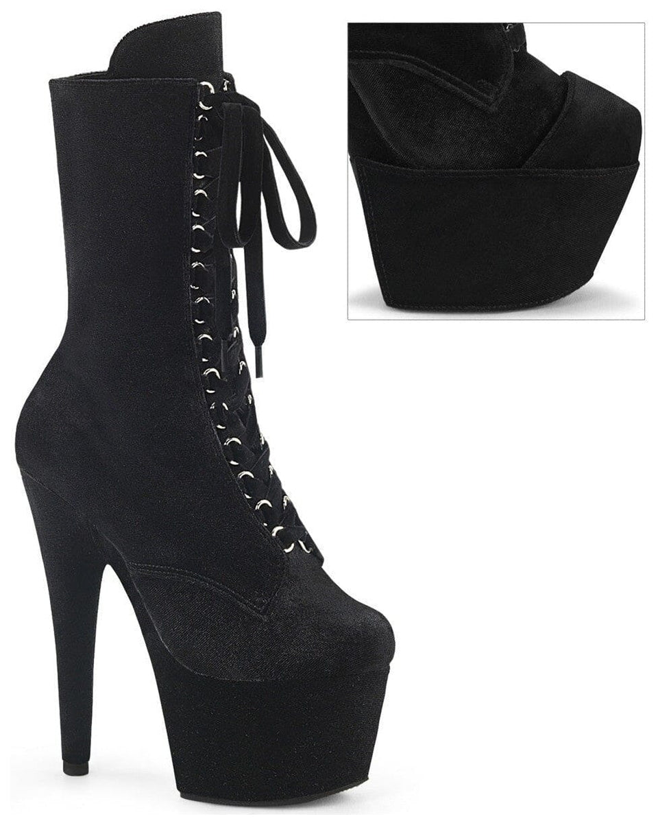 7" Heel, 2 3/4" PF Velvet Lace-Up Front Ankle Boot