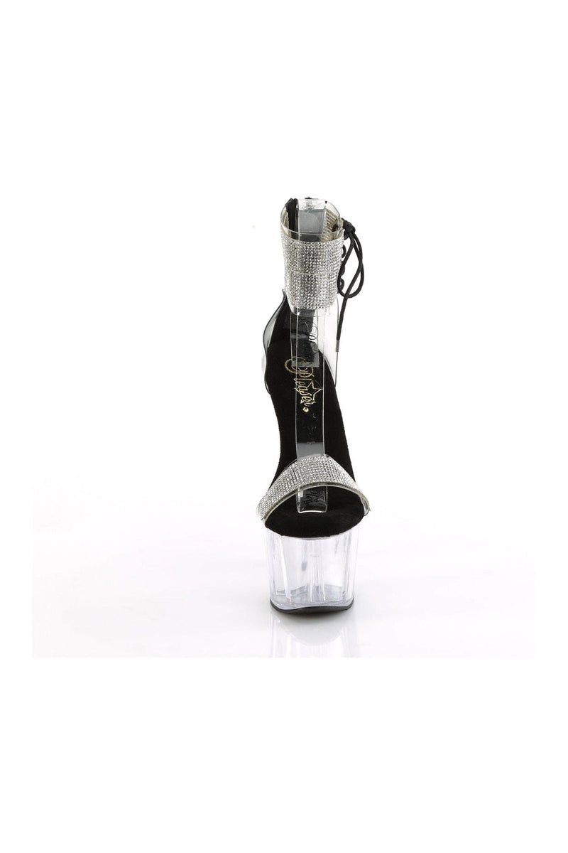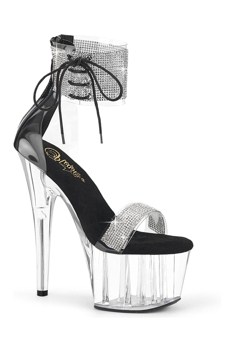 7" Heel, 2 3/4" Platform Ankle Cuff Sandal w/Rhinestones, Back Zipper