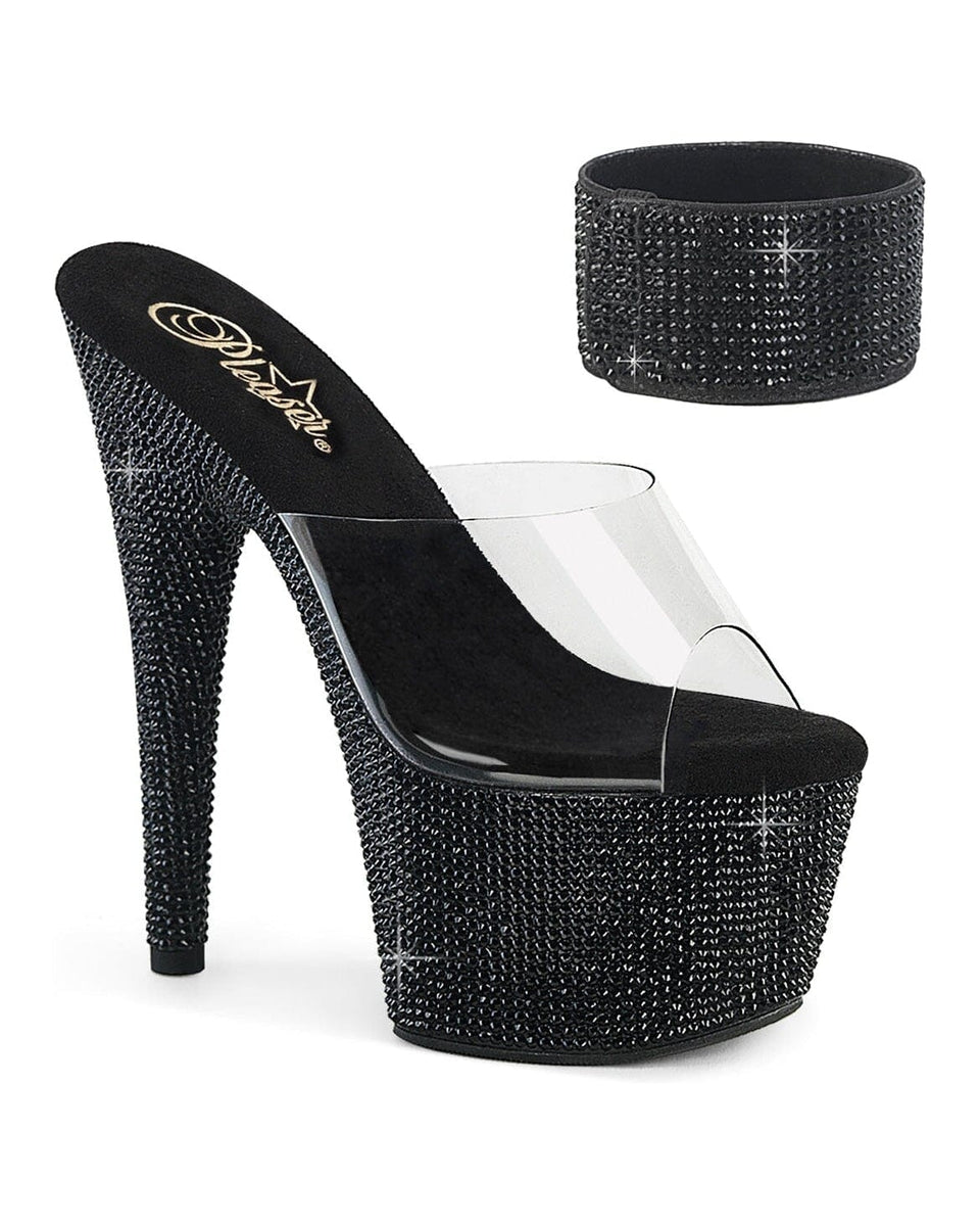 7" Heel, 2 3/4" Platform Rhinestone Embellished Slide w/Matching Cuff