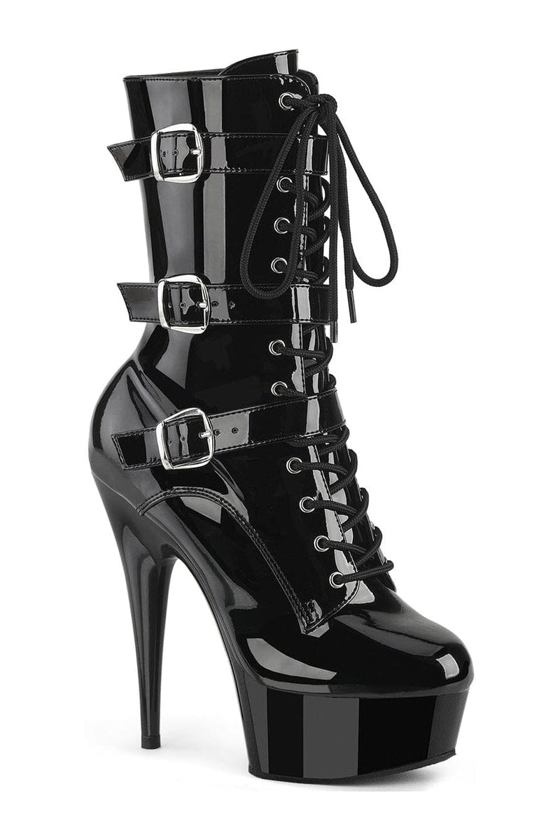 6" Heel, 1 3/4" Platform Lace-Up Multi Buckle Ankle Boot, Side Zipper