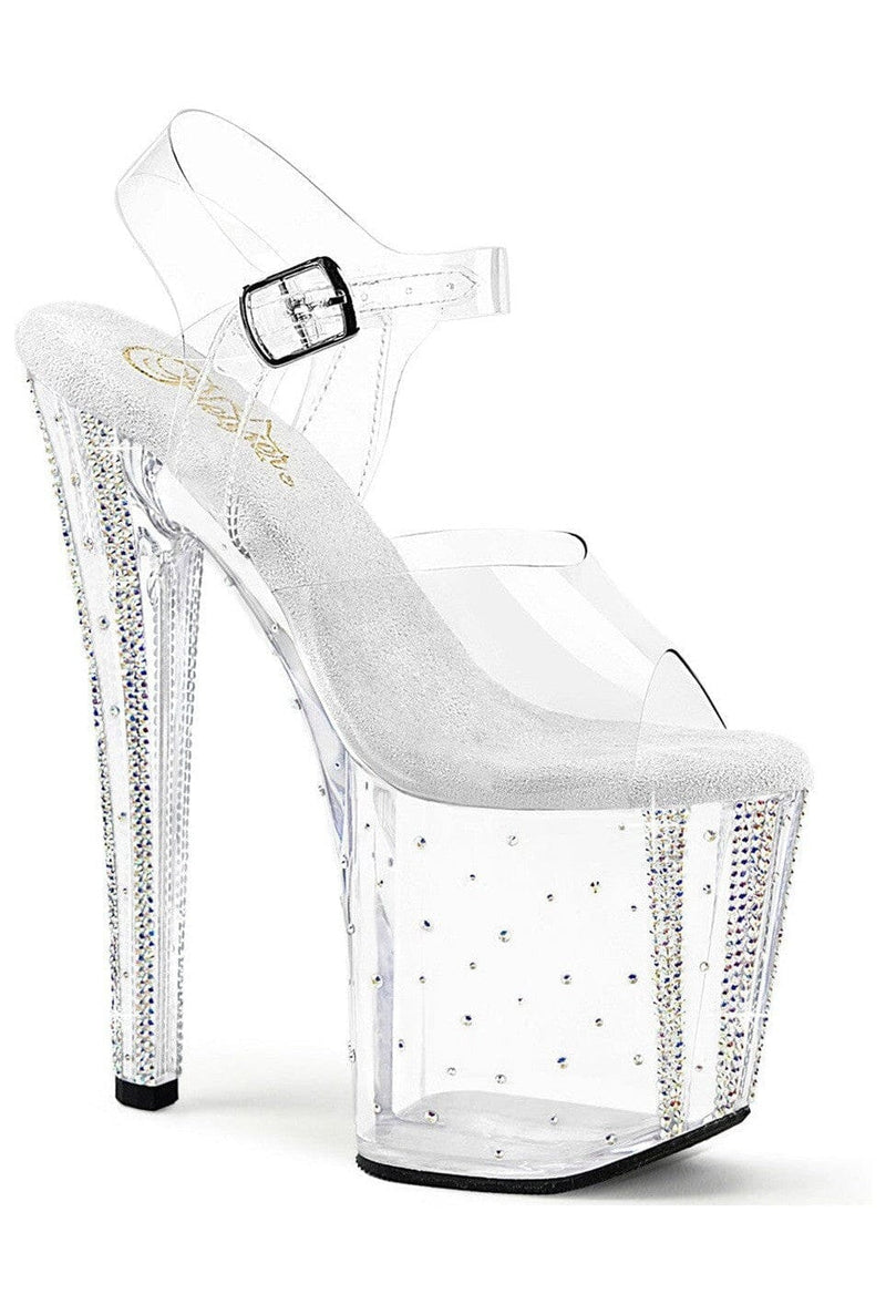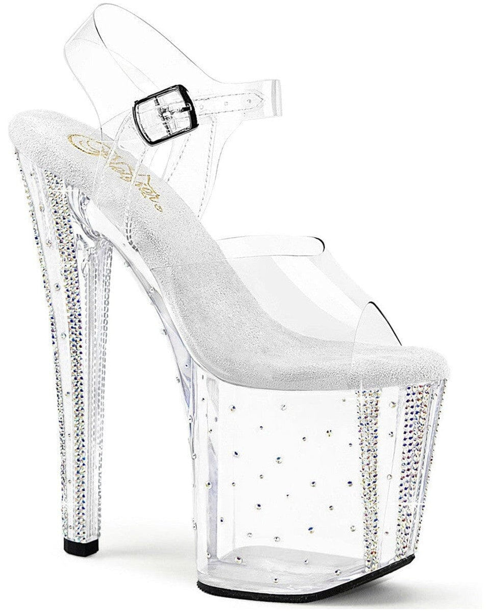 8" Heel, 3 3/4" PF Rhinestone Studded Ankle Strap Sandal
