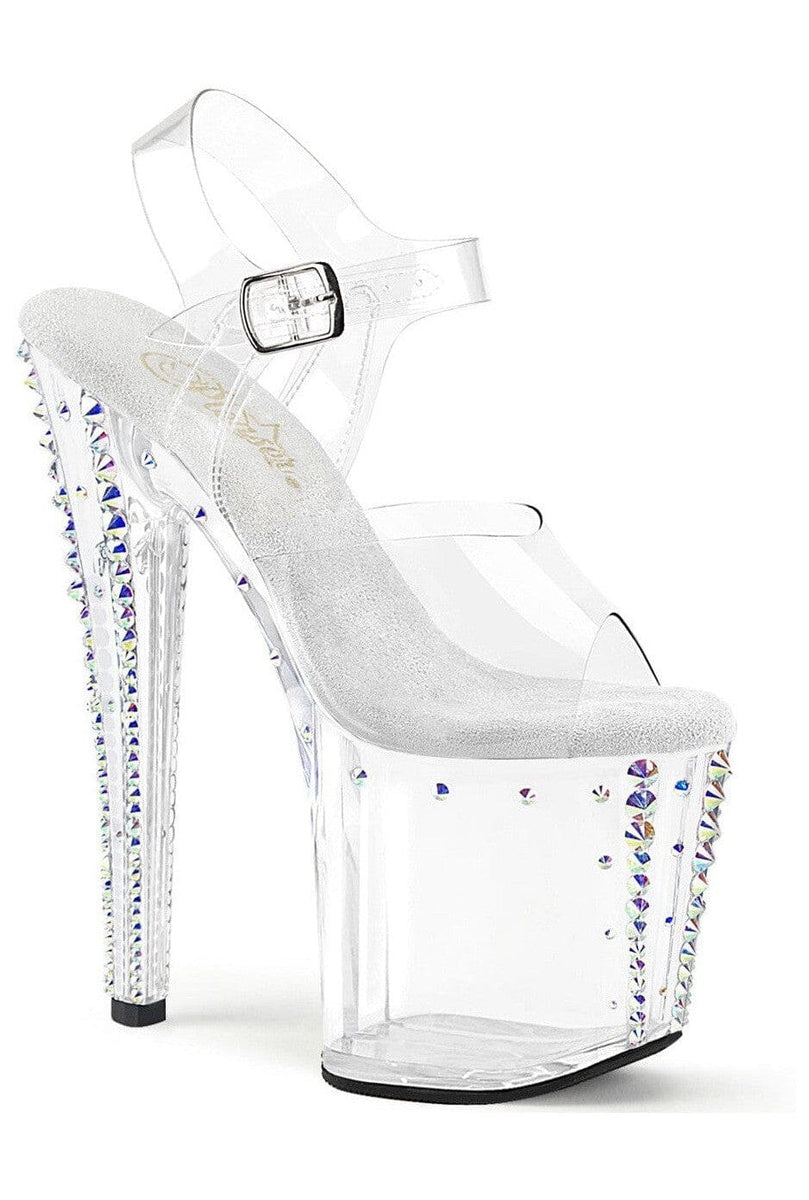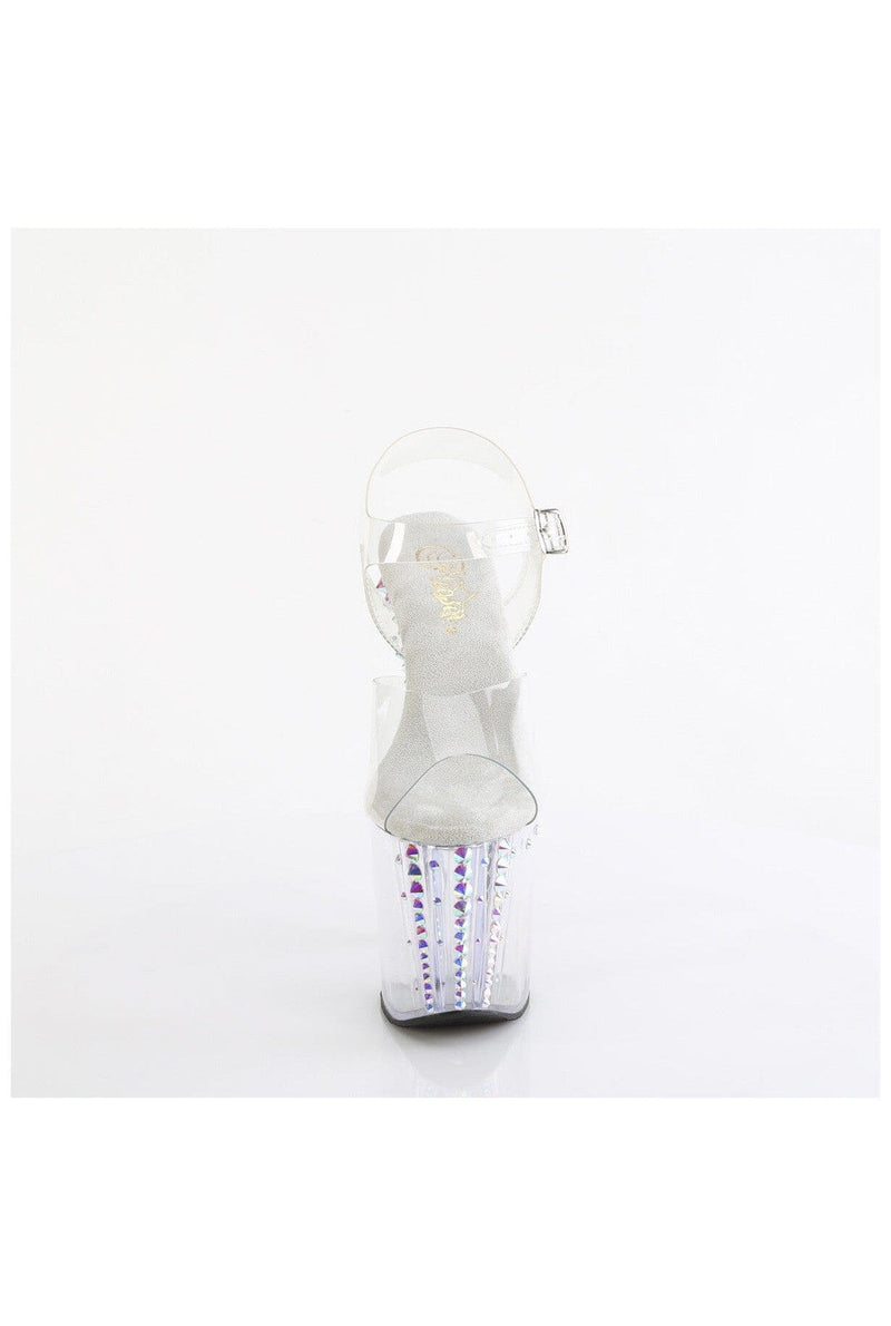 8" Heel, 3 3/4" PF Rhinestone Studded Ankle Strap Sandal