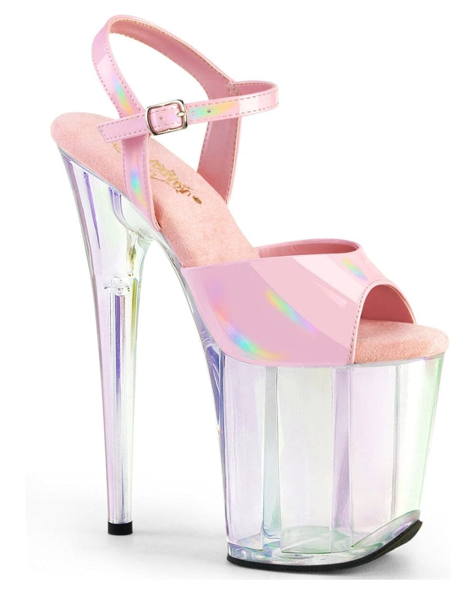 8" Heel, 4" Hologram Tinted Platform Ankle Strap Sandal