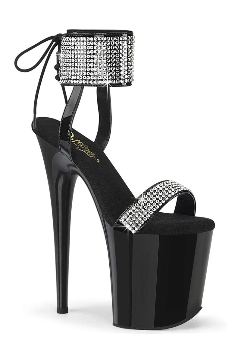 8" Heel, 4" Platform Back Tie Ankle Cuff Sandal with Rhinestones