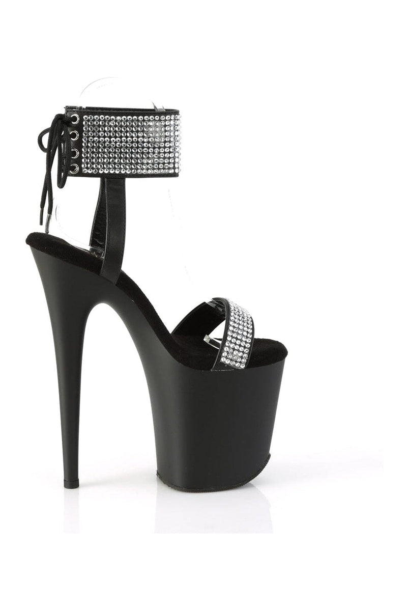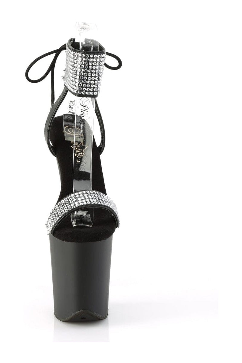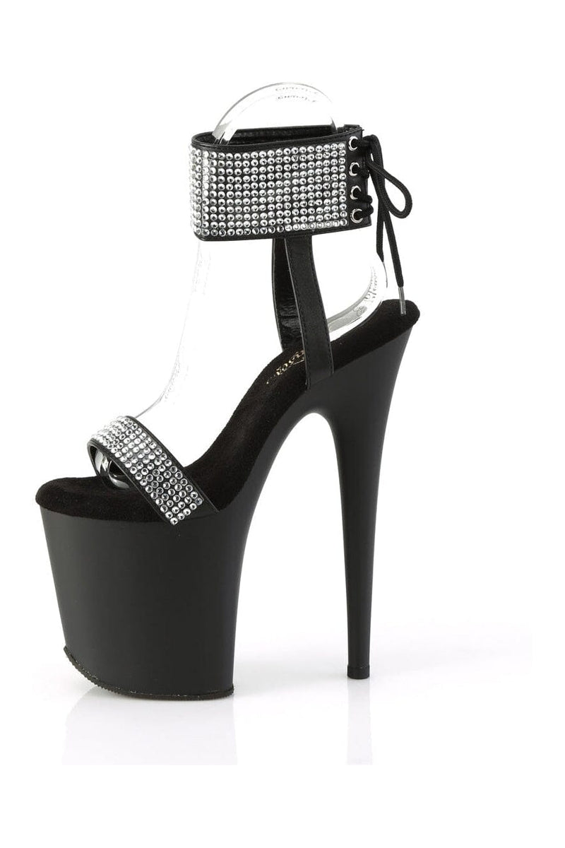 8" Heel, 4" Platform Back Tie Ankle Cuff Sandal with Rhinestones
