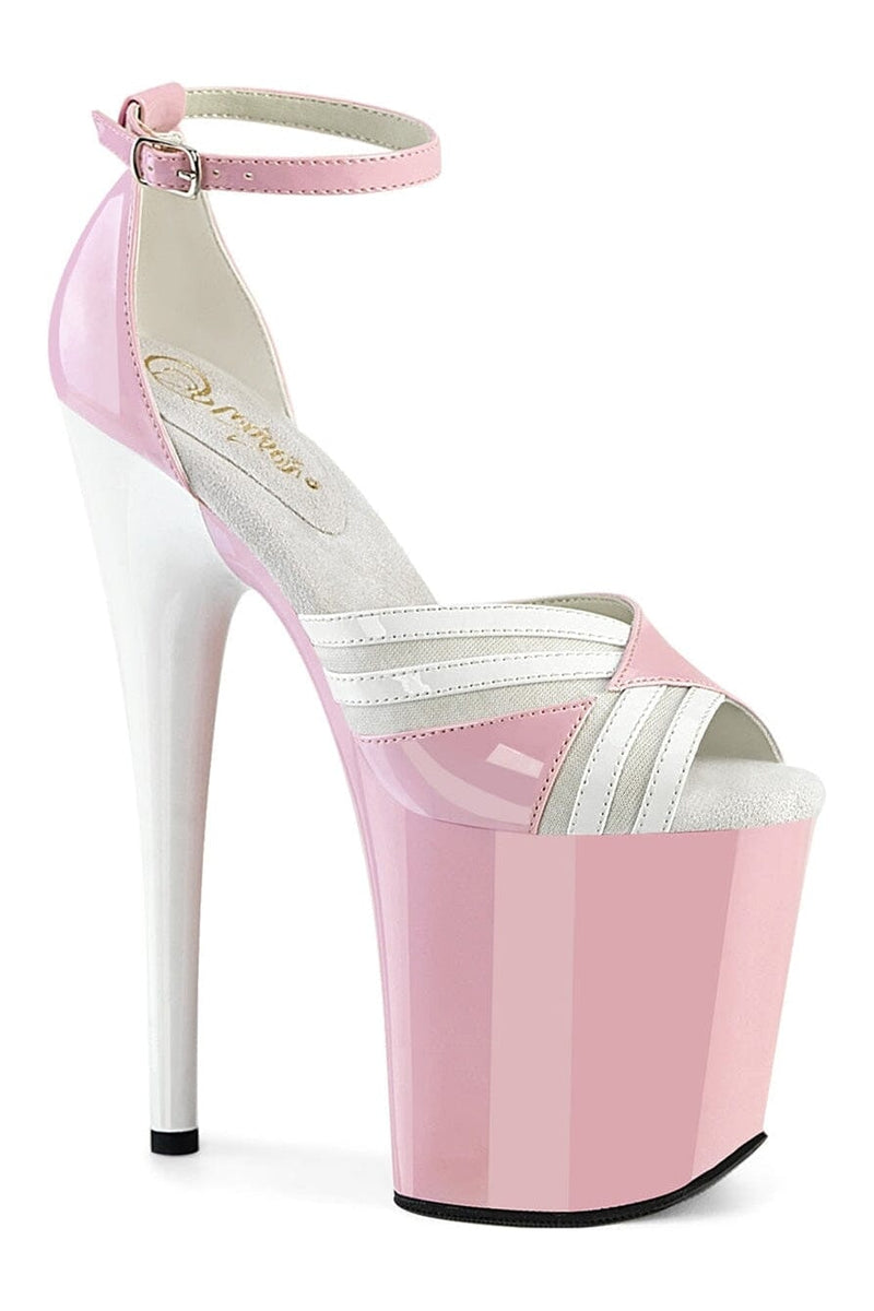 8" Heel, 4" Platform Two Tone Close Back Ankle Strap Sandal
