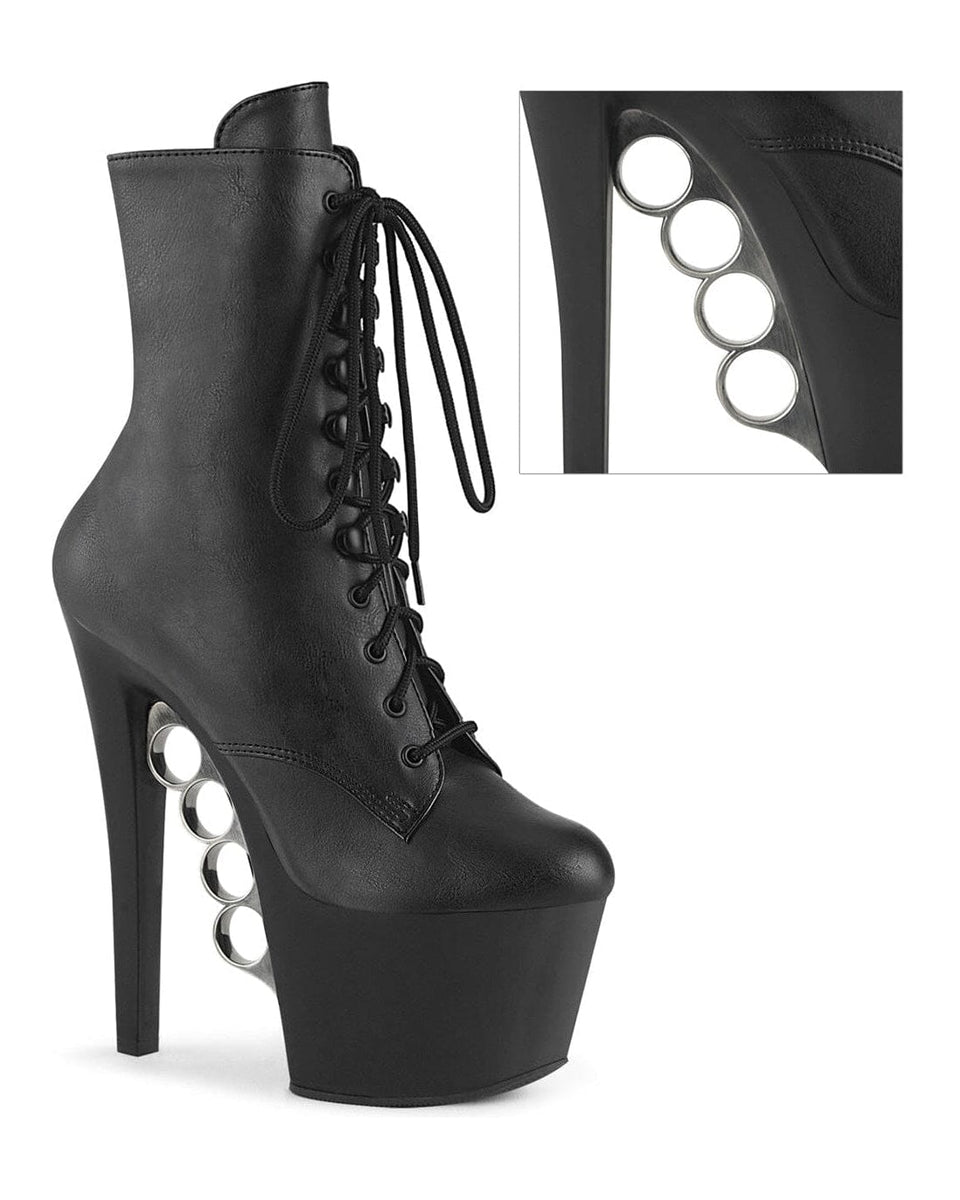 7" Heel, 2 3/4" Platform Ankle Boot w/Brass Knuckles, Side Zipper