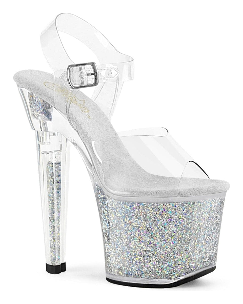 7" Heel, 3 1/4" Platform Ankle Strap Sandal w/Iridescent Glitter Rhinestone