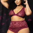 Enter the game of power and limitless seduction with this imposing teddy in transparent mesh, geometric lace, red accents and chain accessory on the back. Side garters, adjustable straps, open back and adjustable hook and eye crotch closure.