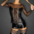 Sensational and revealing Powerwetlook top with deep d.colletage lacing. Adjustable straps on the back for a close fit and fine closing on hooks.