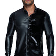 Caring for your wet-look pieces is simple. Just follow the instructions on the care label. For best results, use a gentle wash cycle or handwash with mild detergent to maintain the material’s integrity and shine.